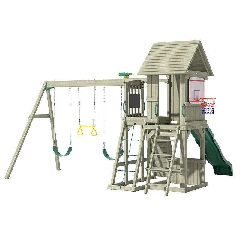 다재:어린이 스윙 조합 슬라이드에는 스윙과 슬라이드뿐만 아니라 등반 프레임, 플레이 하우스, 등반 네트 및 기타 요소가 장착되어 어린이의 다양한 엔터테인먼트 요구를 충족시킬 수도 있습니다.
