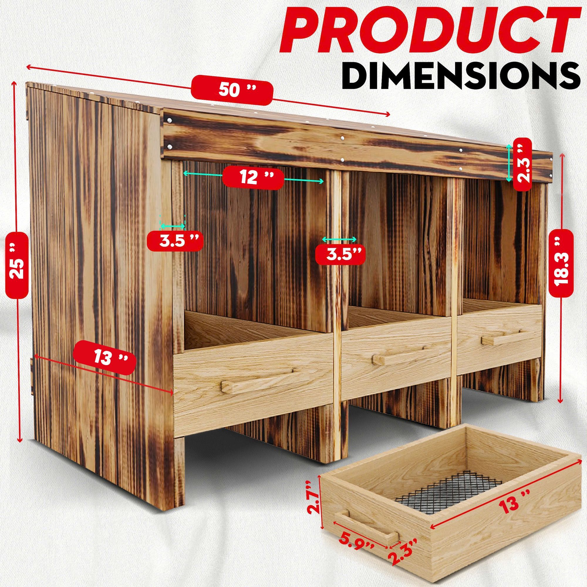 이 강력한 닭장은 내구성과 날씨 저항을 위해 제작되었습니다. 1.5cm 두께의 패널이있는 단단한 전나무 목재로 구성되어 튼튼한 프레임이 제공됩니다. Coop의 외부 치수는 127 × 33.02 × 63.58cm (길이 × 폭 × 높이)이며 넓은 내부를 제공하면서 뒤뜰 사용에 적합한 소형 발자국을 유지합니다.