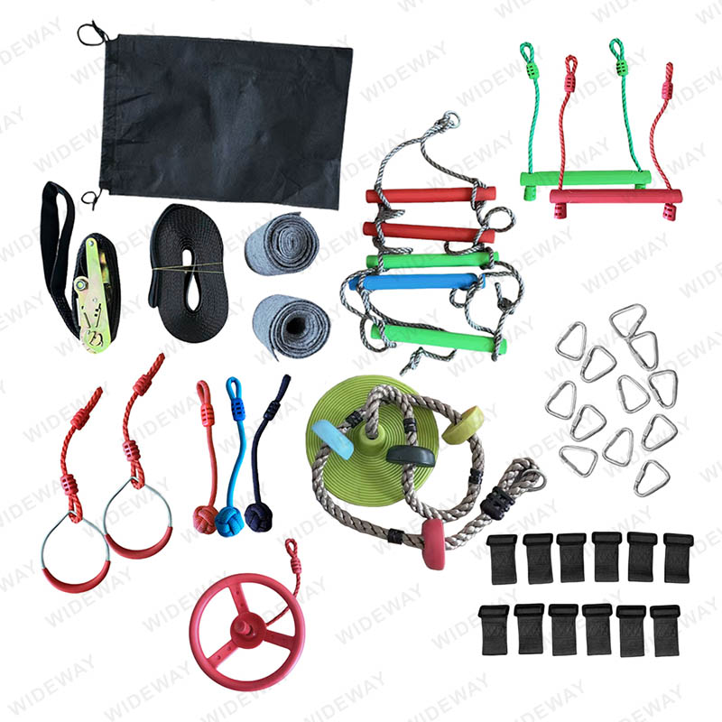 • 2pcs 공중 그네 바, 2pcs 체조 반지, 등산 사다리 및 회전 닌자 휠이 포함되어 있습니다.